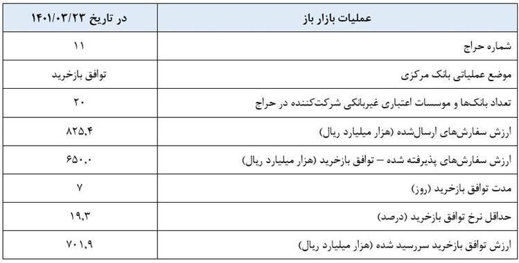 به گزارش پایگاه خبری«عصر اعتبار»، روابط عمومی بانک مرکزی، گزارش عملیات اجرایی سیاست پولی (۲۳ خردادماه ۱۴۰۱) به شرح زیر است: