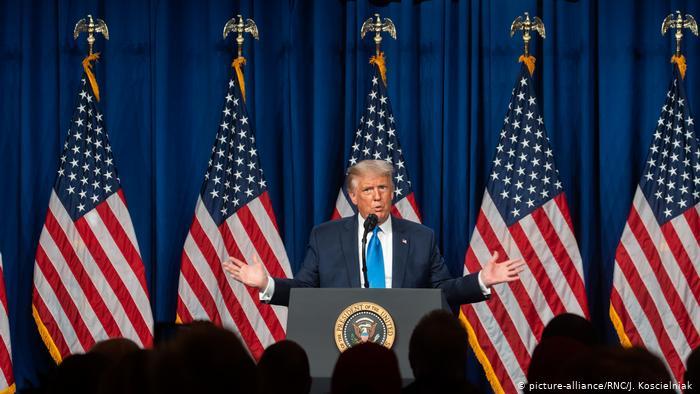 ترامپ پشت تریبون ادعای خود را تکرار کرد که این بار مردم آمریکا با یک انتخابات "تقلبآمیز" سر و کار دارند، زیرا به گفته او بیشتر مردم قصد دارند، از جمله به خاطر گسترش ویروس کرونا، به شیوه پستی در انتخابات شرکت کنند و رأی دهند و همین موضوع تقلب را برای حزب دموکرات آسان میکند.