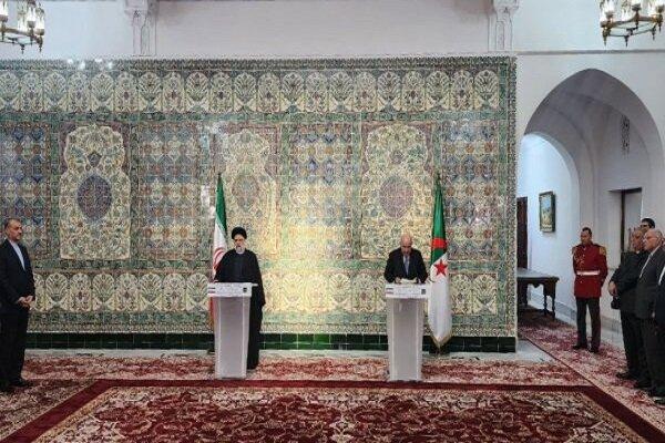 ۴- آقایان عبدالمجید تبون جمهوری دموکراتیک خلق الجزایر و سید ابراهیم ی جمهوری اسلامی ایران پس از گفتگوهای خصوصی، در جلسه عمومی با اعضای هیئتهای دو کشور در فضای مبتنی بر اعتماد، برادری و تفاهم متقابل شرکت نمودند. روسای جمهور دو کشور در این گفتگوها همکاریهای دو کشور دوست و برادر را در همه سطوح مورد بررسی قرار دادند و از سطح هماهنگی و رایزنی بین دو طرف در مورد مسائل منطقهای و بینالمللی مورد علاقه تمجید کردند.