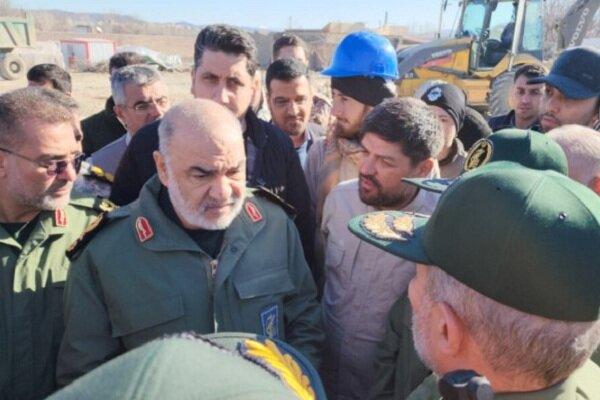 بازدید فرمانده کل سپاه انقلاب اسلامی ایران از مناطق زلزله زده خوی