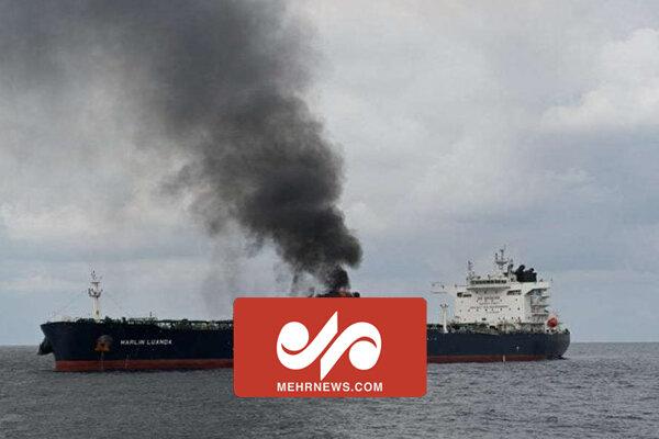 تصاویری از مراحل پایانی اطفای حریق کشتی انگلیسی