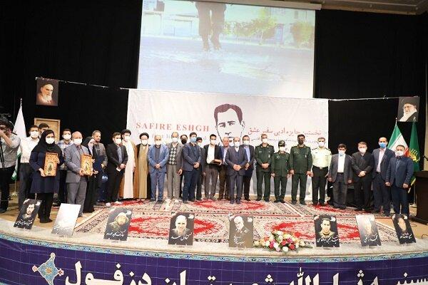 به گزارش خبرگزاری مهر، برترین های نخستین جایزه ادبی سفیر عشق با موضوع مکتب شهید سلیمانی و شهدای مدافع حرم شامگاه پنجشنبه ۱۸ آذر ماه با حضور چهره های مطرح هنری کشور و میهمانانی از سراسر کشور در حسینیه ثارالله دزفول معرفی شدند.