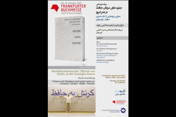 به گزارش خبرنگار مهر، برنامه فرهنگی «جلوههای عرفان حافظ در هنر امروز» به همراه آیین معرفی و رونمایی از کتاب هنری «حافظ، گوته و اوکر: شرق و غرب از هم جدا نمیشوند» از ساعت ۱۵ (به وقت فرانکفورت) فردا شنبه اول آبان ۱۴۰۰ (۲۳ اکتبر) در غرفه ایران نمایشگاه کتاب فرانکفورت به آدرس سالن ۴، D98 برگزار میشود.