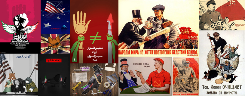 "در سمت چپ پوسترهای رایج در ایران در مورد غرب ستیزی صدور انقلاب اسلامی، نهی مذاکره، تحقیر معترضان انتخابات ۸۸ را نشان میدهد آزادیهای سیاسی نیز در ایران به شدت سرکوب شدهاست"در نهایت گورباچف از قدرت کنارهگیری کرد و در پی آن اتحاد جماهیر شوری در سال ۱۹۹۱ فروپاشید و به ۱۵ کشور تبدیل شد.