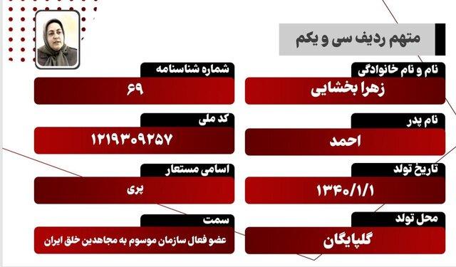 معرفی متهمان دادگاه منافقین/ زهرا بخشایی؛ متهم ردیف سیویکم