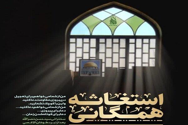 به گزارش خبرگزاری مهر، مسجد مقدس جمکران در لبیک به ندای سید حسن نصرالله دبیرکل حزبالله لبنان پویش استغاثه همگانی برای نجات مردم مظلوم غزه و نابودی رژیم غاصب صهیونیستی را راهاندازی کرد. در این پویش بناست هر سهشنبه و جمعه بعد از نماز عشاء نمازگزاران و زائران مسجد جمکران دست به دعا بردارند.