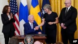 "جو بایدن رئیس جمهوری آمریکا سه شنبه عصر به طور رسمی مصوبه پیوستن این دو کشور به پیمان آتلانتیک شمالی (ناتو) را رسما امضا کرد"این یکی از سریعترین گسترش پیمان دفاع متقابل میان ایالات متحده و متحدان اروپاییش در تاریخ ۷۳ ساله ناتو است.