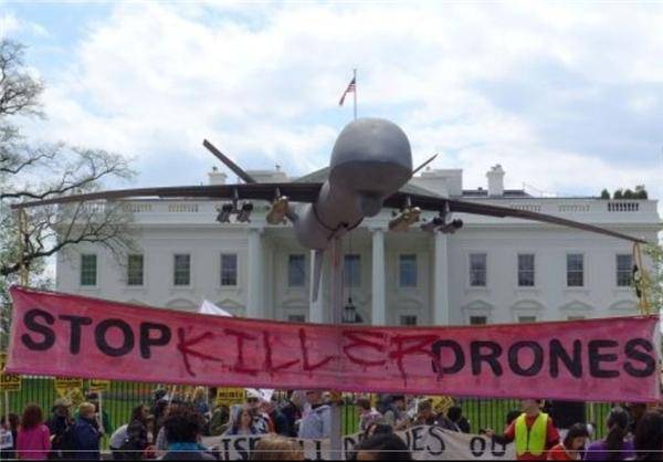 معترضان به سیاستهای آمریکا در خصوص استفاده از پهپادهای آمریکایی هماکنون مقابل کاخ سفید تجمع کردهاند.