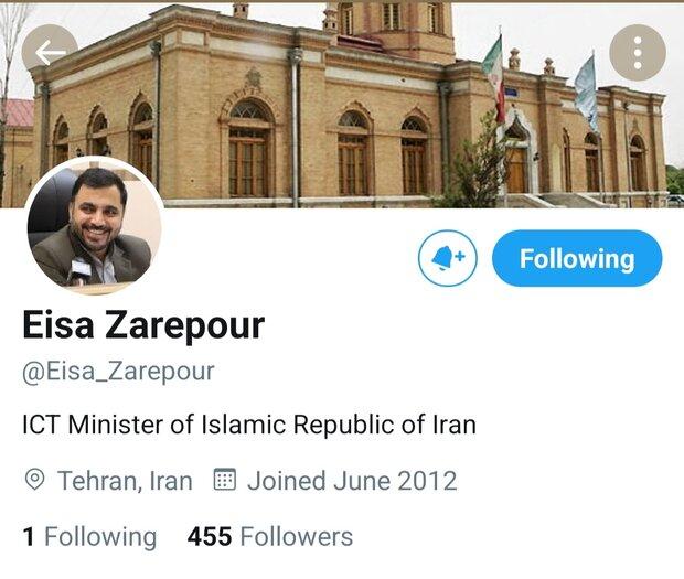 عضویت وزیر ارتباطات در توییتر برای تعاملات بینالمللی