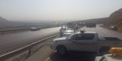 چپ کردن کامیون حامل بنزین، جاده اصفهان-شهرکرد را بست