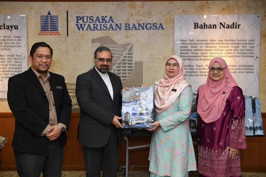 کتاب گلستان سعدی با ترجمه انگلیسی، کتاب نامه امیرالمؤمنین (ع) به مالک اشتر با زبان مالایی، اشعار منتخب عرفانی مولانا، مجموعه مقالات میراث فرهنگی ایران و مالزی، انقلاب اسلامی مبانی و عوامل آن، “انسان و سرنوشت” استاد شهید مطهری، دایره المعارف سه جلدی شامل (تفاسیر قرآن، احادیث و مورخان جهان اسلام) از کتابهای اهدای رایزنی فرهنگی جمهوری اسلامی ایران در مالزی به کتابخانه ملی این کشور بود.
