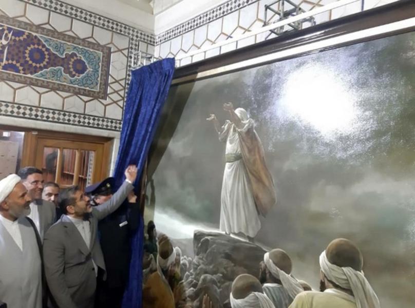 رونمایی تابلوی نماز باران در حرم رضوی