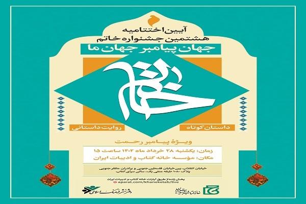 به گزارش گروه فرهنگی خبرگزاری دانشجو، آیین اختتامیه هشتمین جشنواره خاتم (ویژه پیامبر رحمت (ص) عصر یکشنبه ۲۸ خرداد ۱۴۰۲ با سخنرانی غلامعلی حداد عادل؛ رئیس فرهنگستان زبان و ادب فارسی، علیاکبر اشعری؛ رئیس جشنواره خاتم و عضو هیأت امنای خانه کتاب و ادبیات ایران و محمدرضا شرفی خبوشان و با حضور داوران جشنواره و نویسندگان مطرح کشور در سرای کتاب خانه کتاب و ادبیات ایران برگزار شد. در این آیین نفرات برتر در بخشهای بزرگسال، کودک و نوجوان و دانشآموزی این دوره از جشنواره به شرح زیر معرفی شدند: