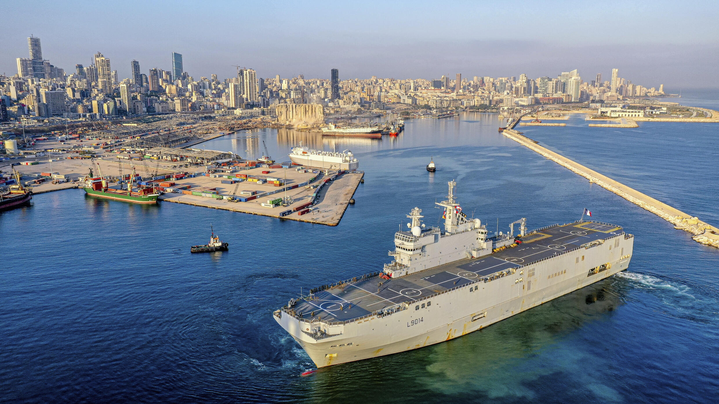 تصویر آرشیوی از ناو هلیکوپتربر فرانسوی تُنِر در بندر بیروت، ۱۴ اوت ۲۰۲۰. این کشتی نظامی پس از انفجار اوت ۲۰۲۰ بیروت به منظور ارسال کمک لجستیکی و نظامی فرانسه به لبنان فرستاده شده بود.