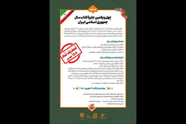 چهلویکمین جایزه کتاب سال جمهوری اسلامی ایران با هدف شناسایی و معرفی کتابهای برتر، کمک به اعتلای سطح دانش و فرهنگ مکتوب جامعه اسلامی، حفظ استقلال و هویت فرهنگی و حمایت و تشویق پدیدآورندگان متعهد و متخصص، بهمن برگزار میشود.