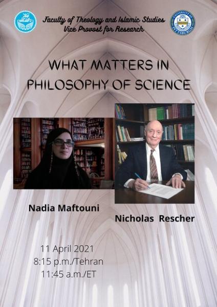 در این وبینار که به زبان انگلیسی برگزار میشود، نادیا مفتونی دانشیار دانشگاه تهران و پژوهشگر پیشکسوت دانشگاه ییل، با نیکولاس رشر پیرامون مسائل فلسفه علم به گفتگو و تبادل نظر خواهد پرداخت.