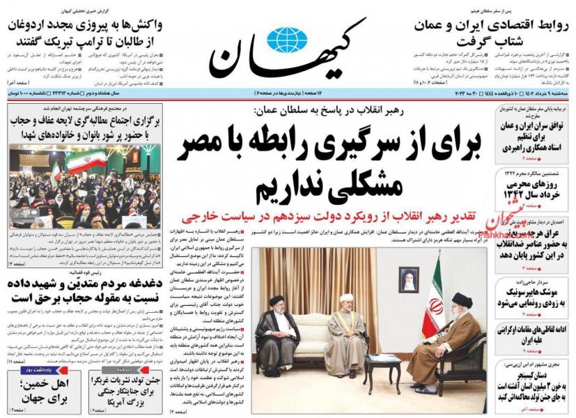 بیانات مقام معظم رهبری در دیدار با سلطان عمان ، پیری بی رویه جمعیت ایران تا ۳۰ سال آینده ، بررسی برنامه هفتم در مجلس ، اجتماع باشکوه مردم در صحن مطهر حرم رضوی به مناسبت دهه کرامت ، بررسی برنامه پنج ساله اردوغان رئیس جمهور ترکیه و همگانی شدن مطالبه حجاب و عفاف در کشور بخشی از تیتر روزنامههای امروز کشورمان است.