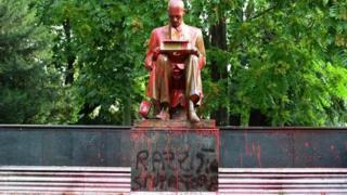 حمله به مجسمه 'روزنامه نگار طرفدار استعمار' در ایتالیا