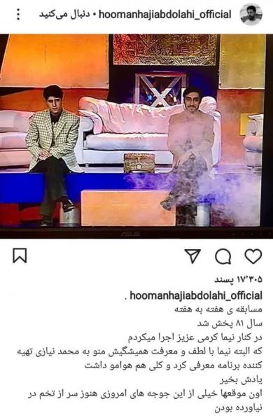 هومن حاجی عبداللهی، مجری و بازیگر تلویزیون، تصویری قدیمی از خود و نیما کرمی را در صفحه مجازیاش به اشتراک گذاشت .