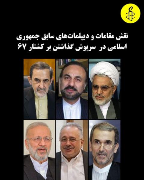 سازمان عفو بینالملل روز دوشنبه ۱۷ بهمن با انتشار بیانیهای اعلام کرد که امتناع مقامات جمهوری اسلامی، بهخصوص دیپلماتهای سابق حکومت، از اعتراف درباره «کشتار سال ۶۷»، منجر به تداوم چرخهای از جنایات بینالمللی و سرپوشگذاری بهقصد حذف هرگونه مخالفت سیاسی شده است.