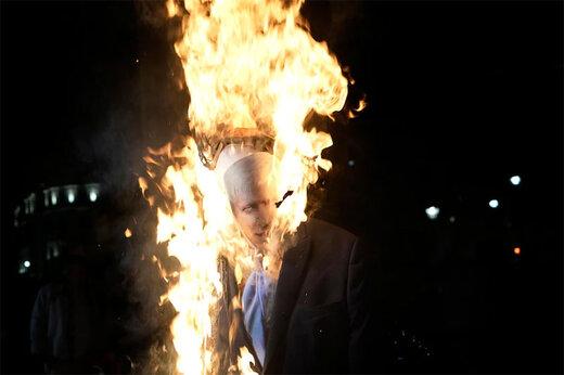 ببینید | آدمک بوریس جانسون در لندن به آتش کشیده شد